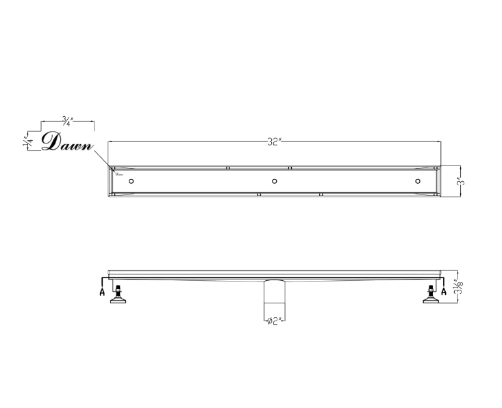 32 Inch Tile Insert Linear Drain with Adjustable Leveling Feet, 304 Stainless Steel Polished Satin Finish, Dawn® Colorado River Series