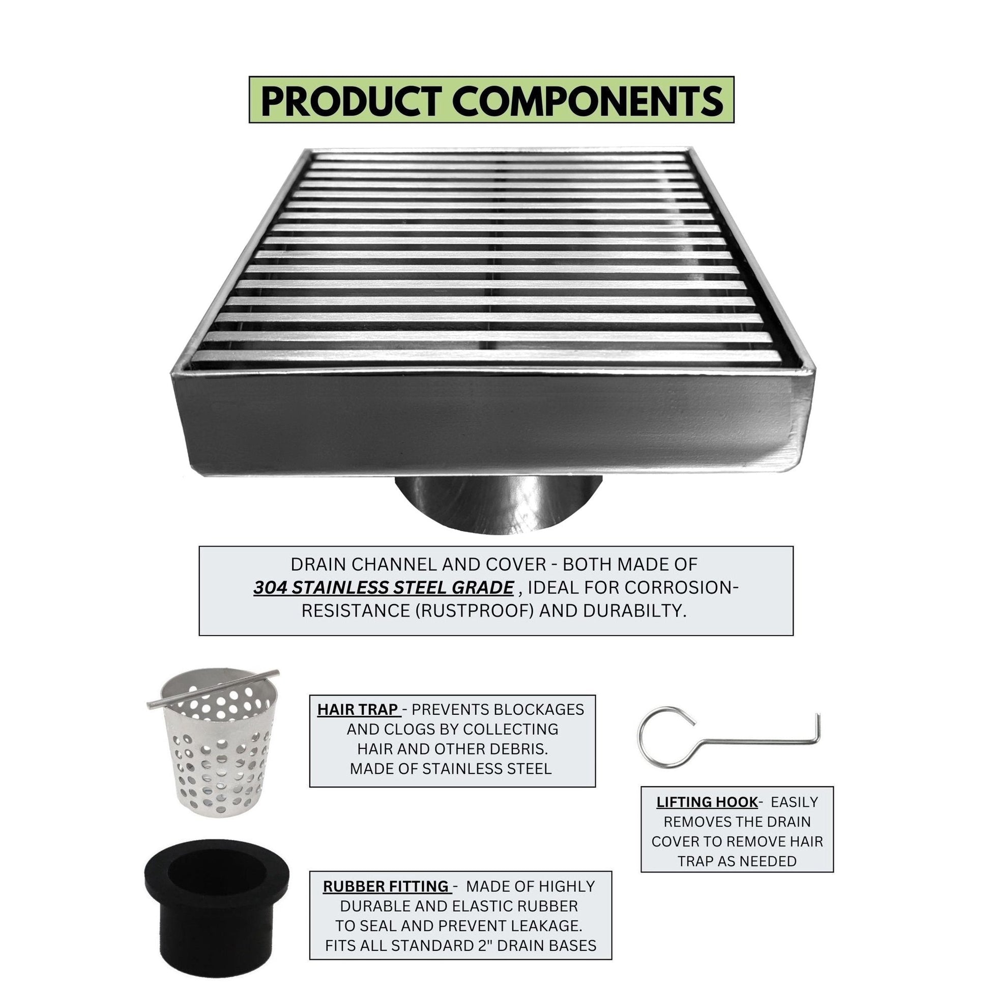 Crafted from high-quality 304 brushed stainless steel, this square shower drain is not only visually appealing but also ensures durability, corrosion resistance, and long-lasting performance.
