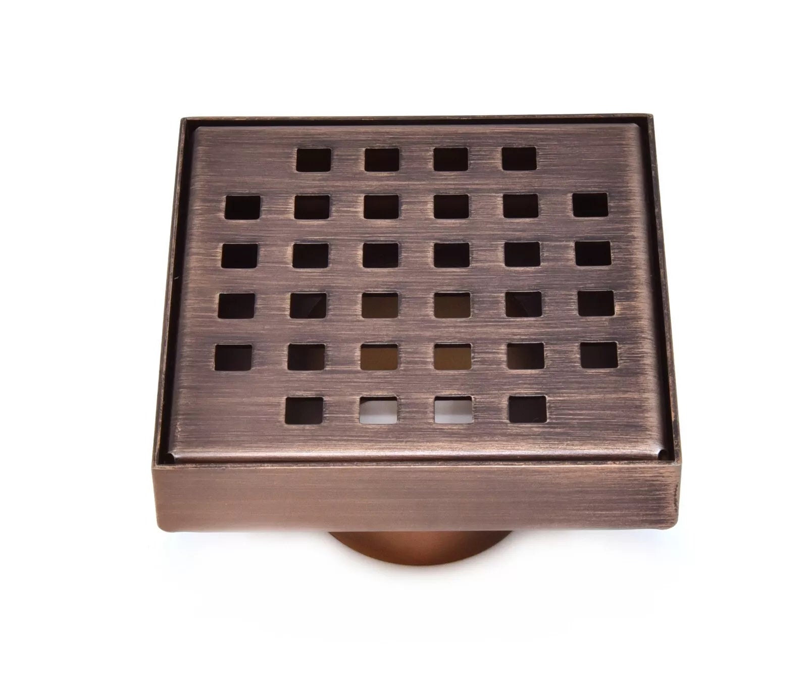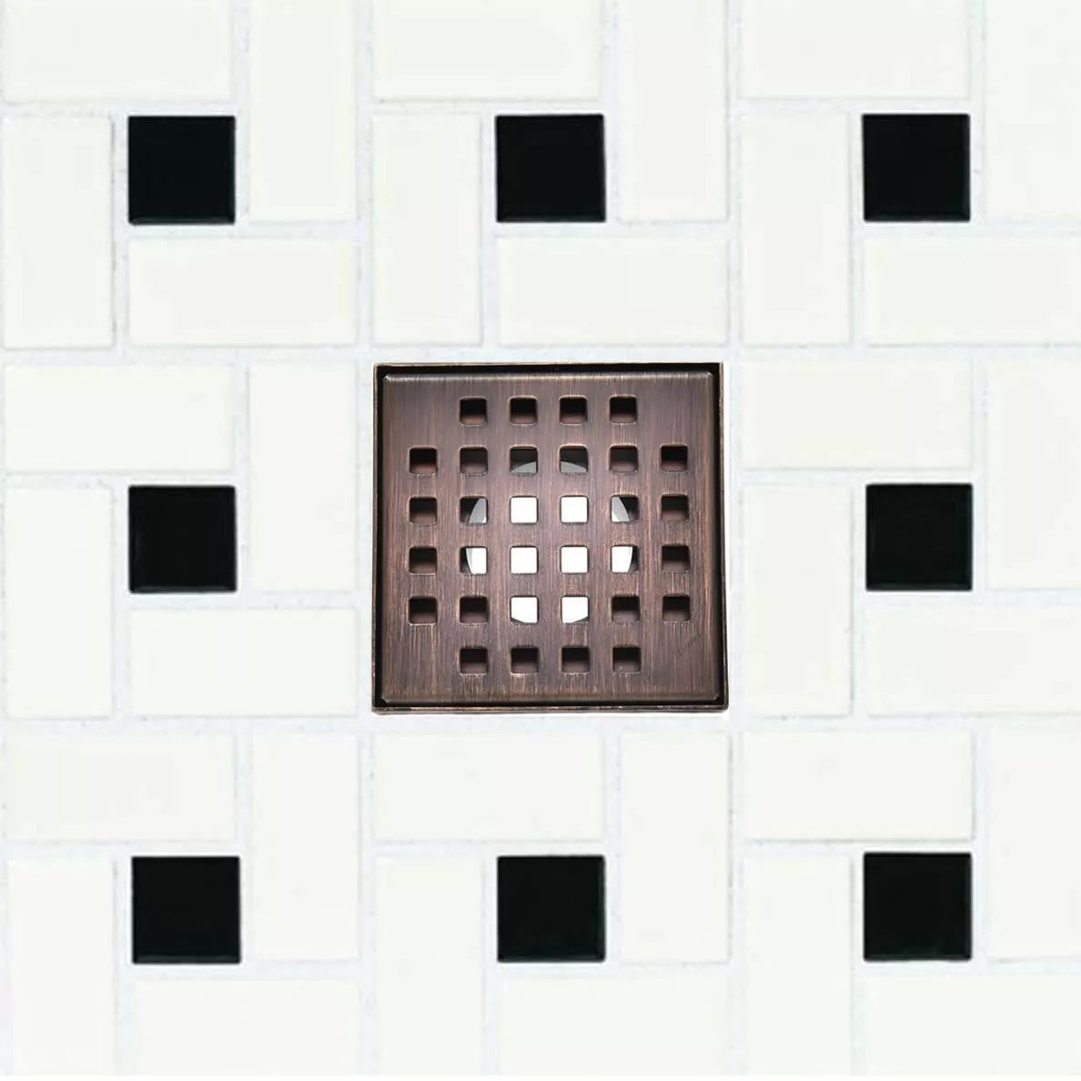 Our Oil-Rubbed Bronze Shower Drain Kit for Small Bathrooms features a classic square pattern. It enhances visual appeal while ensuring smooth water flow, delivering both style and function to any shower space. Paired with an ABS, PVC, or cast-iron base flange and a hair trap, this drain assembly kit is ready for installation.