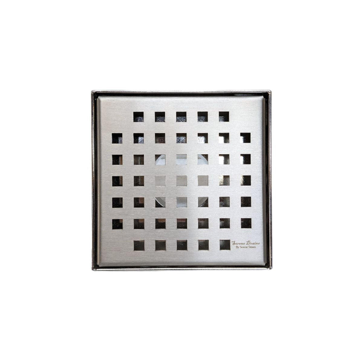 5 Inch Brushed Square Drain Cover, Brushed Traditional Square Design, Drain Kit with Hair Strainer and Base Flange by SereneDrains