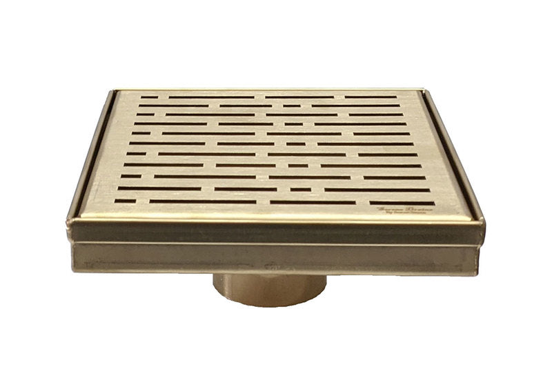 Our 6 Inch Gold Square Drain Cover in Broken Lane Design features an interesting modern geometry that enhances visual appeal while ensuring smooth water flow, delivering both style and function to a shower space of any size. Paired with an ABS, PVC, or cast-iron base flange and a hair trap, this drain assembly kit is ready to install.