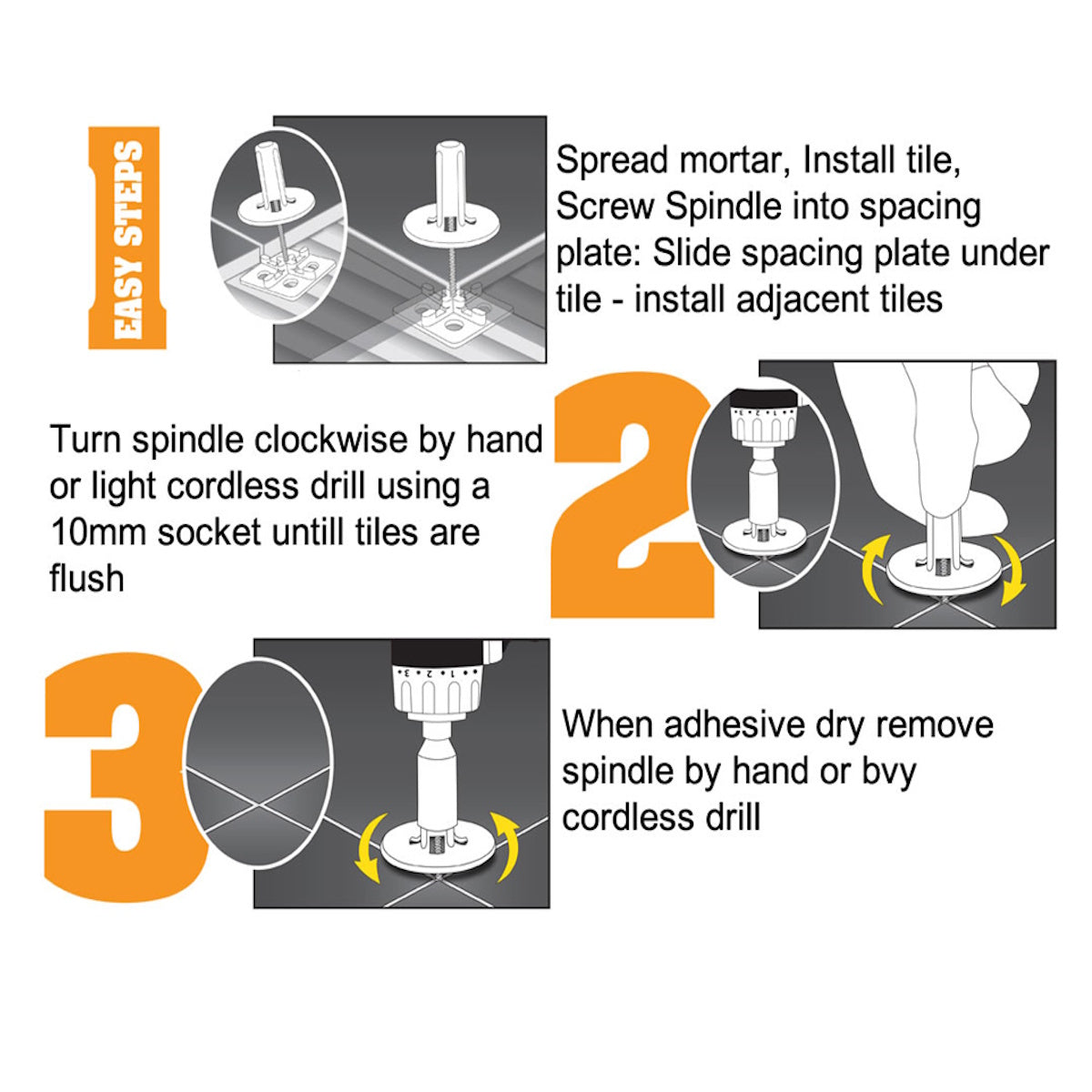 2️⃣ Insert the spindle into the spacing plate & position between tiles