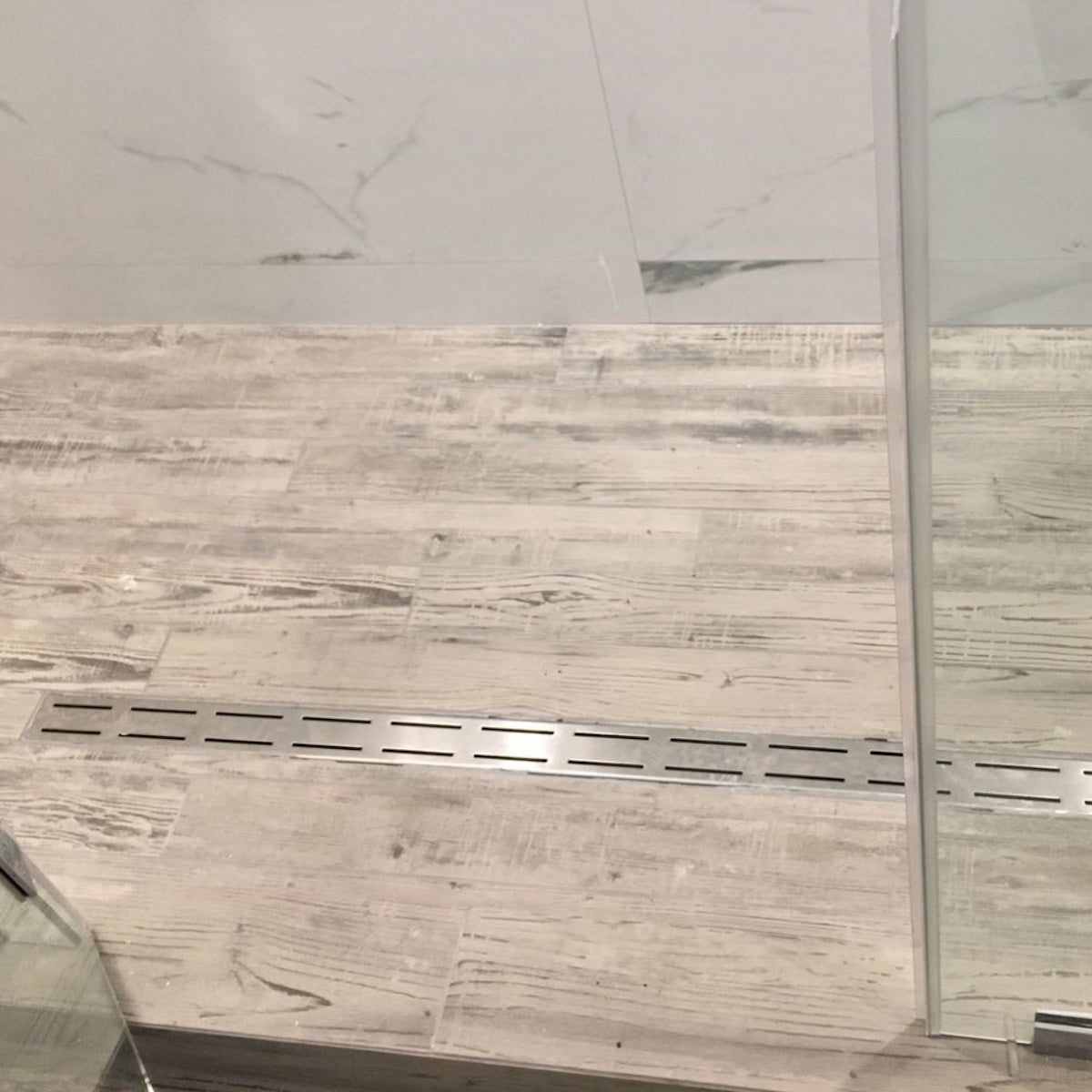 Transform your bathroom into a luxurious sanctuary with the SereneDrains Brushed Nickel Parallel Design Long Shower Drain—where elegance meets performance.