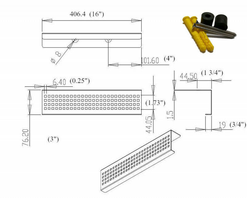 Includes: 1 Drain Body 1 Drain Grate 1 Drain Puller and Rubber Fitting + Shower Shelf (stainless steel)