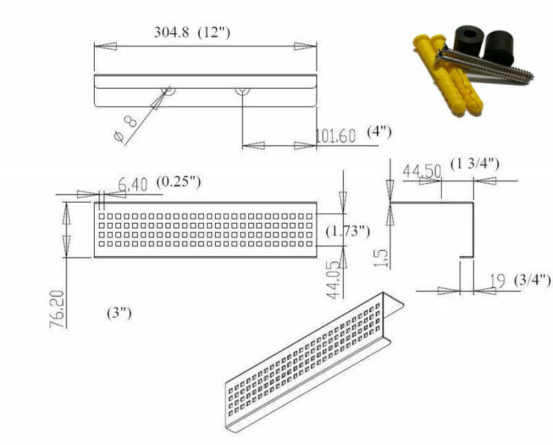 Shelf sizes: 12" (304mm), 16" (406mm), 24" (600mm)