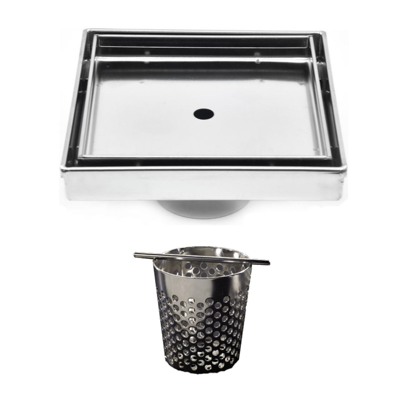 SereneDrains 5-Inch Square Tile-in Drain with Hair Trap