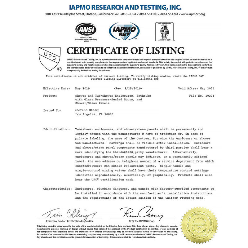 - IAPMO-UPC Certified